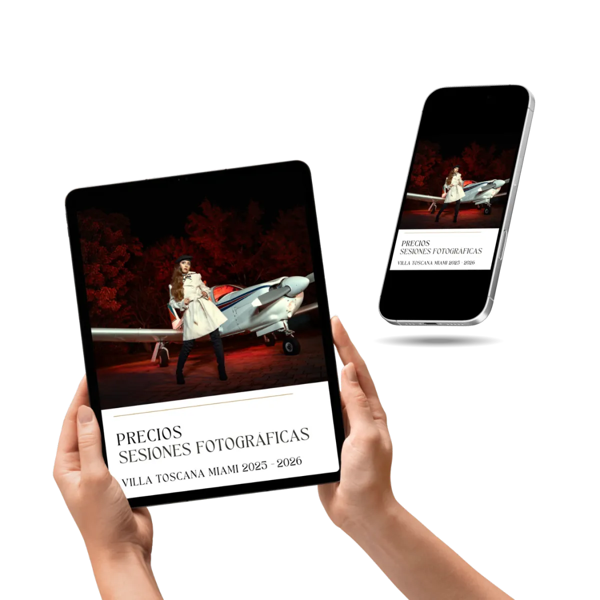 En Villa Toscana Miami, organizamos mucho más que quinceañeras o sesiones fotográficas: creamos experiencias inolvidables. Descargue el folleto de precios y descubra por que somos los favoritos en Florida e USA para una sesión de fotos de quinceañeras.